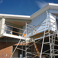 External painting of JMG offices. This is where our 50ft cherry picker came in handy in order to reach spots in difficult positions. This photo highlights the varied colour scheme.